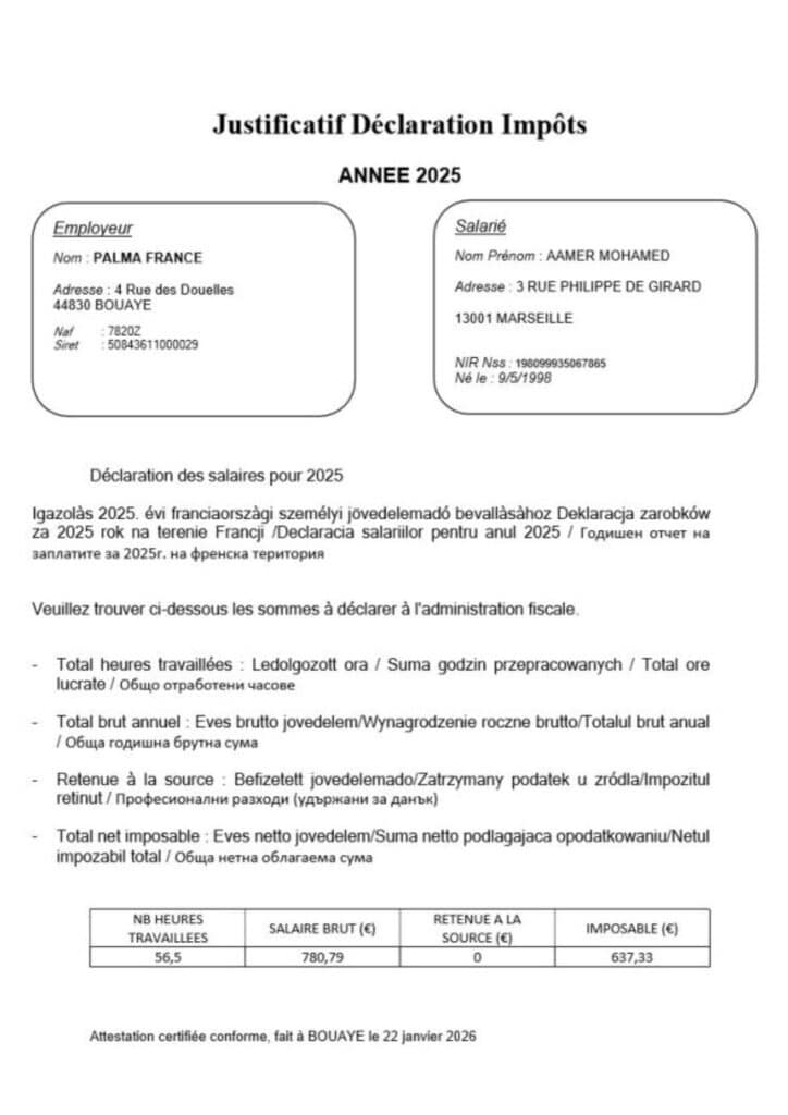 Un alt document trebuie descărcat aici, imprimat și trimis administrației fiscale împreună cu acest document “Déclaration de revenus” ( ” Declarația de venit”) : Déclaration de retenue à la source année 2025 ( Declarația de reținere la sursă 2025).